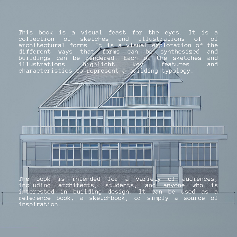 This book is a collection of sketches and illustrations of architectural designs. It is a visual exploration of the different ways that forms can be synthesized and buildings can be rendered. The book covers a range of building types, from houses to skyscrapers, highlighting key features and characteristics.